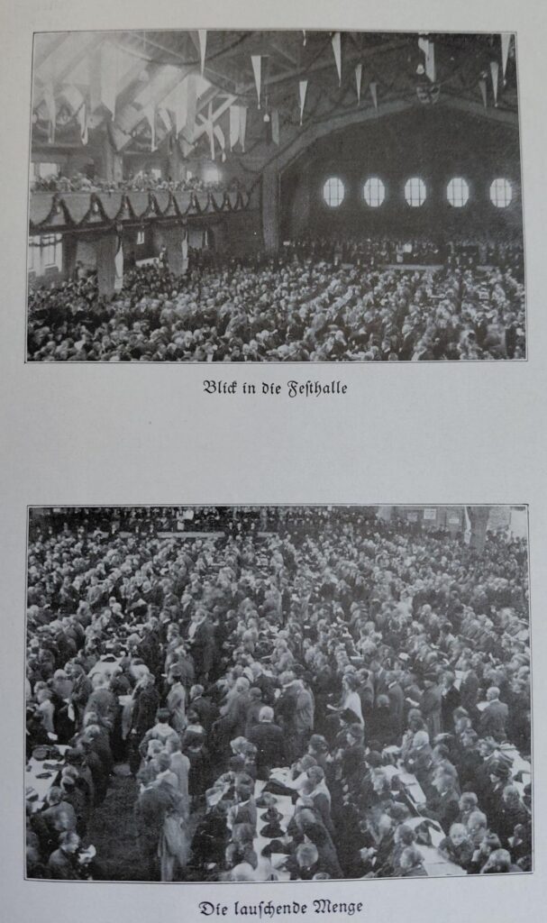 Zur Eröffnung damals traten ein Posaunenorchester und ein „Massenkirchenchor von Sängern“ auf. Zahlreiche Redner ergriffen das Wort auf der „Riesenversammlung“. Einige kamen aus Regionen, die vor dem Ersten Weltkrieg noch zum Deutschen Reich gehörten. Sie schilderten die Not der evangelischen Kirche dort und der deutschen Minderheit. Die Not der evangelischen Kirche in Russland nach der Machtergreifung der Kommunisten und die einsetzende Christenverfolgung wurden in den Blick genommen. Damals – so hieß es – erhob sich die Versammlung zu dem ergreifenden Gelöbnis, das den Brüdern in Not zurief: „Wir hören eure Not. Wir wollen an euch denken, für euch beten, für euch arbeiten“! (EvDia 1925, S. 221)