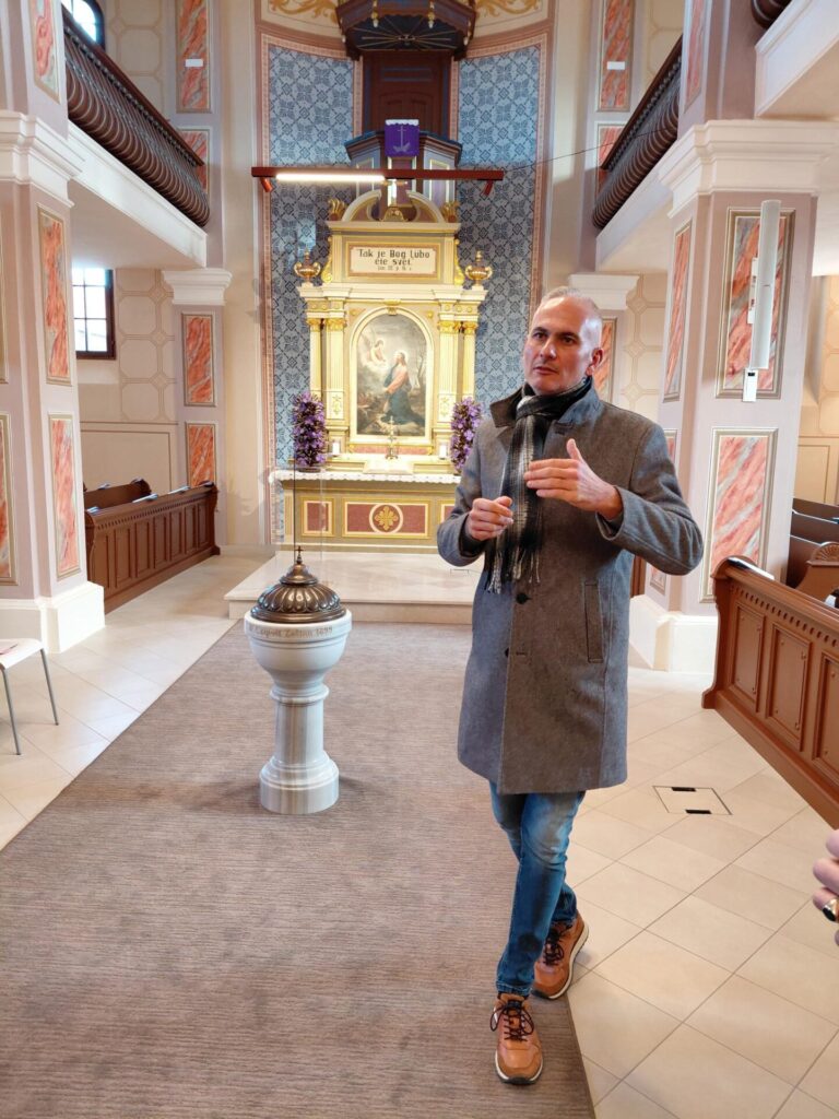Im nordostslowenischen Bodonci zeigt sich, wie sehr eine lebendige Gemeinde ein Dorf prägen kann. Die evangelische Kirche A. B. hat dort in den vergangenen Jahren eindrucksvoll unter Beweis gestellt, was möglich ist, wenn viele zusammenstehen. 2022 konnte die umfassende Sanierung der denkmalgeschützten Kirche abgeschlossen werden – ein Projekt, das für die Gemeinde von großer Bedeutung war. Viele Ehrenamtliche haben bei den Sanierungsarbeiten insgesamt 5.000 Arbeitsstunden dafür eingesetzt. Das Gotteshaus, fast 120 Jahre alt, litt seit Langem unter massiven Feuchtigkeitsproblemen. Die Mauern mussten freigelegt, Drainagen gelegt und der schadhafte Putz vollständig erneuert werden. Heute präsentiert sich die Kirche wieder in bestem Zustand. „So schön war die Kirche auch direkt nach dem Bau nicht,“ so Pfarrer Simon Sever, der mit viel Elan die Bau- und Sanierungsprojekte der Kirche vorangetrieben hat. Seit 20 Jahren ist er der Pfarrer – aber inzwischen mehr als das: Nachbar, Freund, Netzwerker. Er hilft, den Ort zusammenzuhalten.