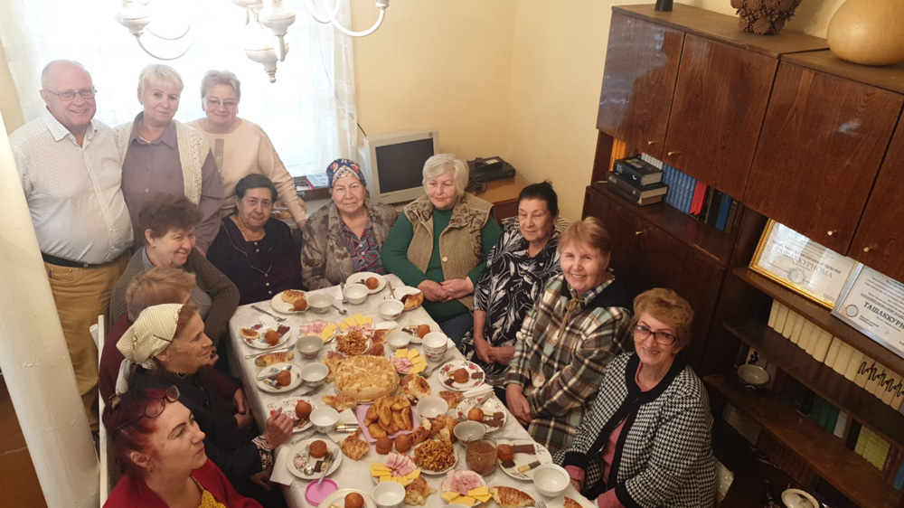 Beim anschließenden Teetrinken erklärten die Teilnehmerinnen überraschend einig: Uns geht es gut. Ja, die Gemeinde ist sehr geschrumpft. Standen früher die Gottesdienstbesucher bis in den Garten, so sind es jetzt nur noch wenige, die sich regelmäßig versammeln. Dass die allermeisten Kinder und Enkel nach Russland gegangen sind, das schmerzt. Aber das Leben im Land selbst sei jetzt viel leichter als zu Beginn des Jahrtausends, auch wenn die Renten zum Teil äußerst niedrig sind. Von den Frauen, die hier sind, will keine weg: Hier ist ihre Heimat.